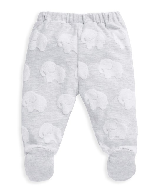 This top and leggings set is a wardrobe staple for your little one. Made from soft jersey cotton, the top has a striped pattern whilst the leggings feature a cute textured elephant design and cosy enclosed feet. There are popper fasteners on the shoulder and on the crotch, with an elasticated waistband on the leggings, making it really easy to get baby dressed and ready for the day.